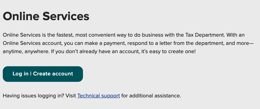 3. To pay through your Online Services account, click “Log in | Create account.”  Log in with your username and password.