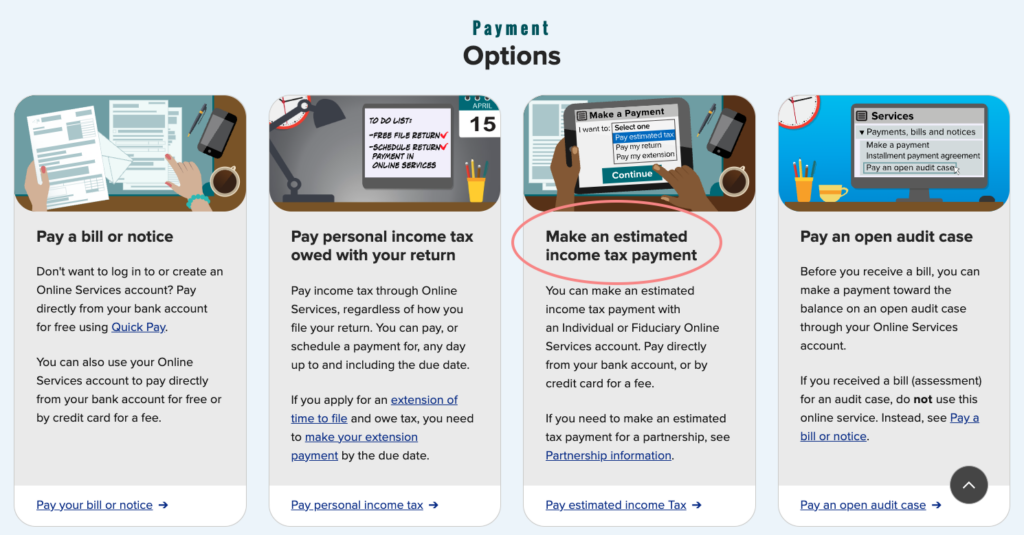 • If not, you’ll need to make estimated payments directly through the state’s system.